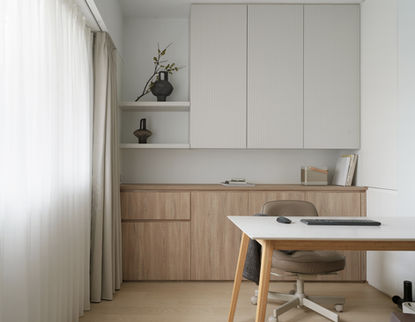As for private space, surplus colors were discarded, and a large amount of white and traces of ash were used to fill the space. With the warm solid wood floor, blank-leaving and light, the natural light and shadow left by the sunshine in each space became the most beautiful painting.